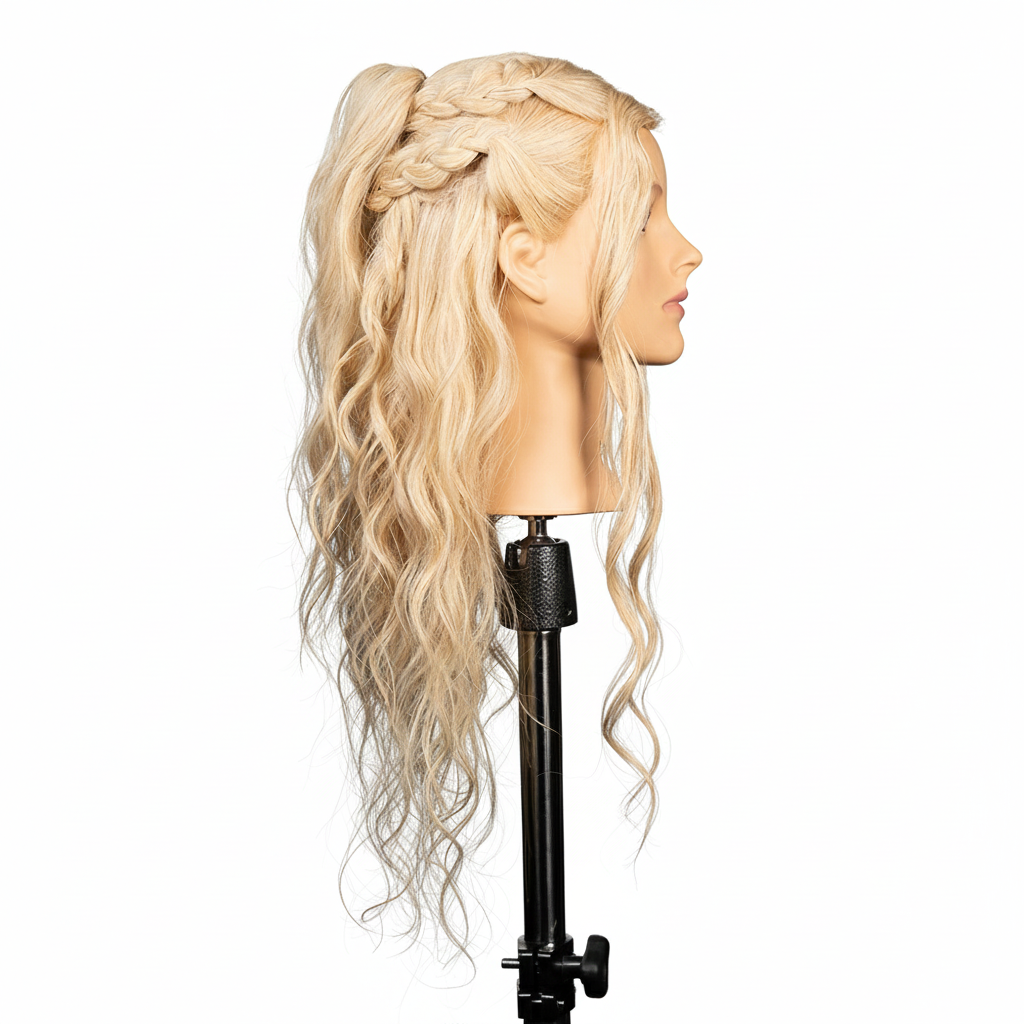 This 100% human hair mannequin with 24 inch long silky real human hair is ideal for Instagram and TikTok ready updo training and education.